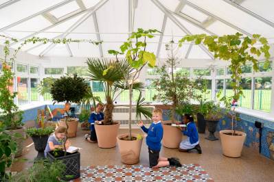 Beyond the glasshouses, there is a wildlife pond, outdoor classroom, raised vegetable beds, orchard and den-making area, providing hands-on opportunities for science, teamwork and outdoor learning.