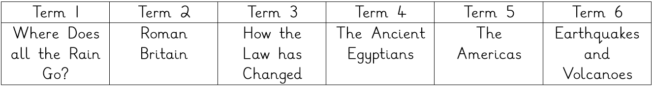 All subjects (except RE) which are taught in school follow the guidelines set out in the National Curriculum Document.