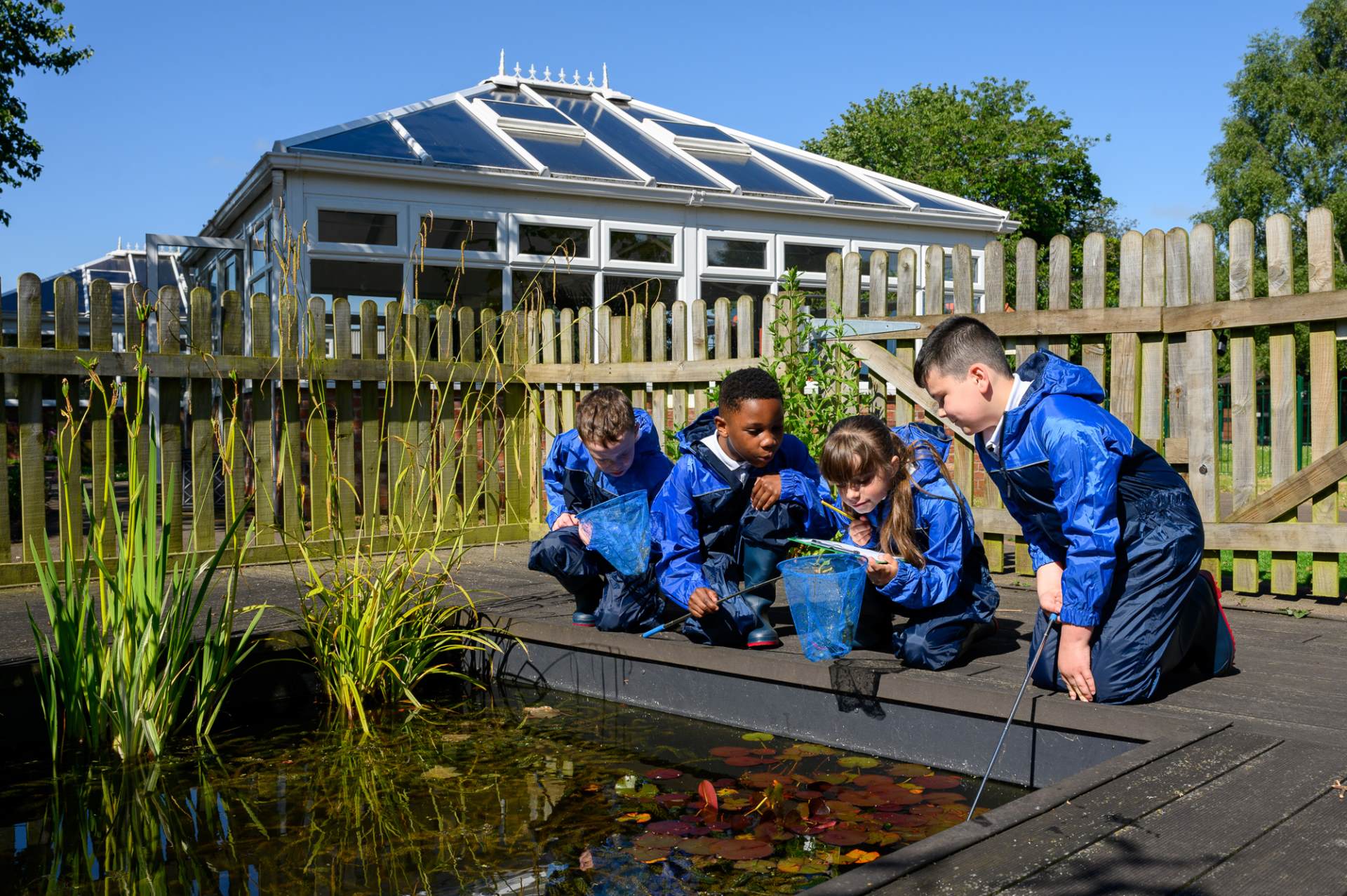 Beyond the glasshouses, there is a wildlife pond, outdoor classroom, raised vegetable beds, orchard and den-making area, providing hands-on opportunities for science, teamwork and outdoor learning.